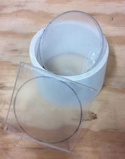 Con el Sharpie traza el diámetro interior del PVC en dos piezas de. 220" vidrio acrílico grueso. Cortar la parte sobrante con la Sierra de banda o un jig sierra si no tienes una sierra de banda. Utilice un esmeril a forma uno para que encaje perfectamente en el PVC. Este va a ser en medio del PVC con los LEDs. Otra forma para que quepa solo un poco flojo. Esta será en la parte superior del PVC.