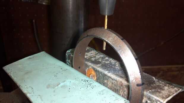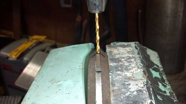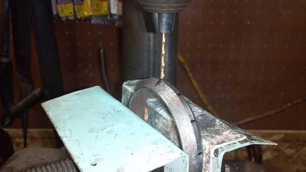 Centro de cada marca en una prensa del taladro y taladro limpio a través de la Junta. Si no tienes una prensa del taladro, pruebe a la Junta en un tornillo de montaje y taladrarla. Sólo asegúrese de que está recto.