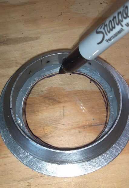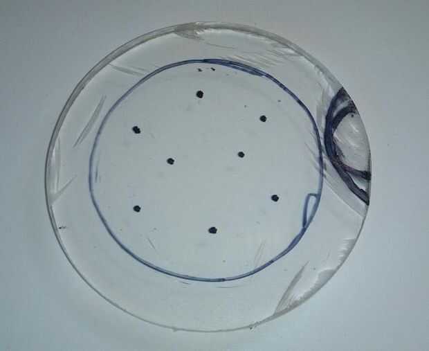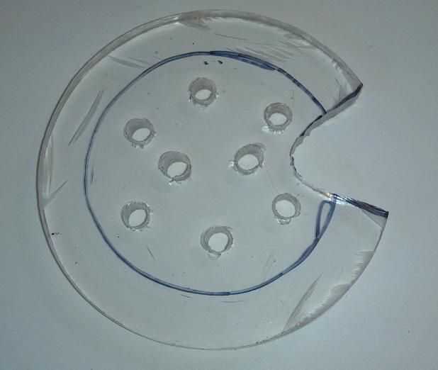 Después de la foto, hacer un patrón de ocho puntos dentro del ring. A la derecha de los puntos marca una muesca que se extiende justo en el círculo. Esto es para la parte inferior del interruptor momentáneo para pegar a través.