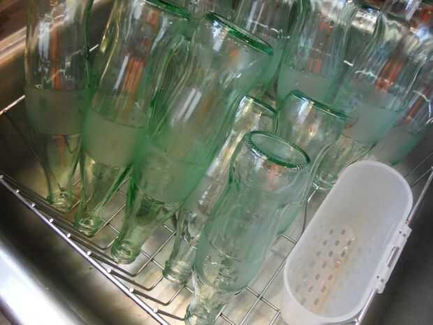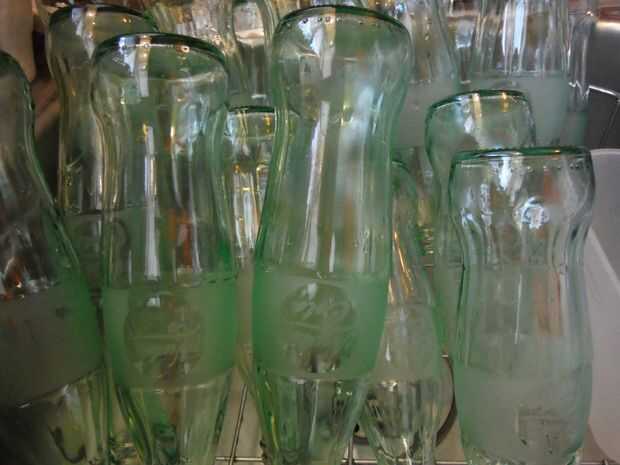 Bebió el coque y luego enjuagar las botellas.