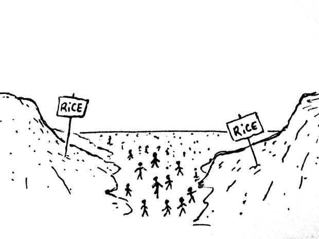 Leer el ejemplo anterior de la arena, se podría concluir que un mol de granos de arroz se va a alimentar a más de una persona por más de un día. De hecho podríamos saltar derecha hasta la población entera en la tierra, que - en números redondos - 7 billones de personas o 7 x 10 ^ 9. Cada uno come 38700 granos de arroz por día nos da 2.71 x 10 ^ 14 arroz granos si cada ser humano en la tierra vivió en arroz por un día. Haciendo que durante un año necesitamos 9.89 x 10 ^ 16 poco, los granos de arroz.