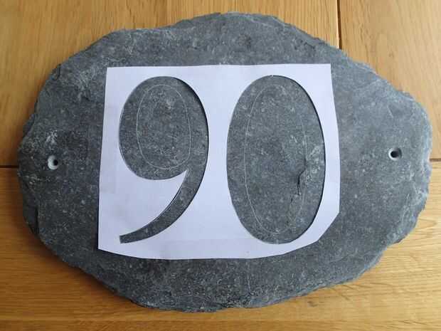 Una vez que los números en la posición correcta, tome un cuchillo con una punta afilada y corte a través de los números, anotando en la pizarra. Empiece desde el interior de cualquier número y hacia fuera. En mi ejemplo con el cero empiezo con el medio, porque si había comenzado con el exterior de la cero, habría eliminado el interior y no habría sido capaz de cortar en el lugar.