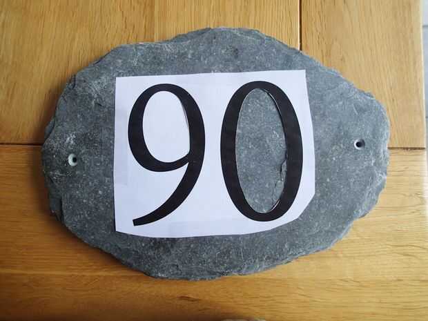 Después de que hayas escogido un tipo de letra, ajustar el texto para ser del tamaño correcto para tu pieza de pizarra e imprimirlo. Cortar el papel por lo menos 1 cm alrededor del número que se puede poner en la pizarra para comprobar que se ve bien. Si tienes el mal de tamaño, simplemente vuelva a intentarlo. Una vez que tengas el correcto tamaño texto, pegarlo en la pizarra con cinta adhesiva en exactamente la posición que desea que los números.