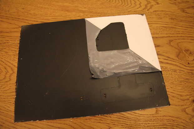 Mi color era negro para el suelo de espalda... Utilizando pintura en aerosol negro mate en una lata había rociado la hoja. Cuando la pintura se haya secado.