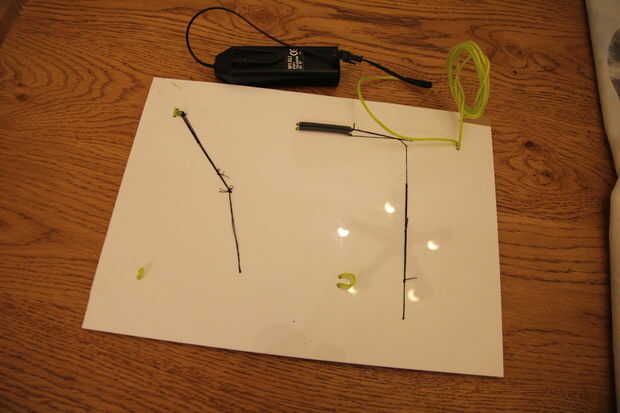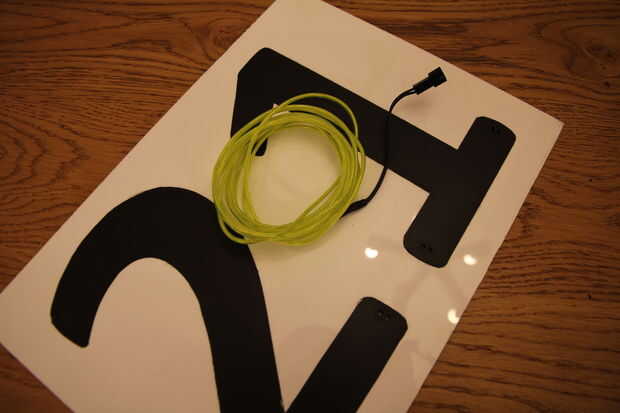 La caja de batería negro contiene el inversor... Este circuito pasos hasta 3 voltios a varios mil voltios, así es como funciona el cable. El fósforo en el cable se ilumina cuando se aplica un alto voltaje a través de él. Esto a su vez consume energía de la batería para trabajar solamente para cuatro o cinco horas. Convertí mi unidad a trabajar en un adaptador de red de 220 voltios a 3 voltios. Mediante la adición de un circuito que cambiará los 3 voltios en y apagarse cada segundo. Se puede añadir un interruptor para encender el el número en "Modo intermitente". Esto a su vez destellará el número y apaga cada segundo lo que es altamente visible para los visitantes o los servicios de emergencia para encontrar su casa...