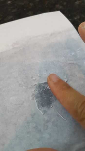 Hacer una capa a la vez, no trate de frotar todo apagado en un punto o la imagen se deshagan. Una vez que baje la primera capa, pasar a la siguiente sección y dejar secar. Círculo a la primera sección, un poco más mojado y frotar otra vez suavemente, generalmente repito esto unas 3 veces y 98% del papel saldría.