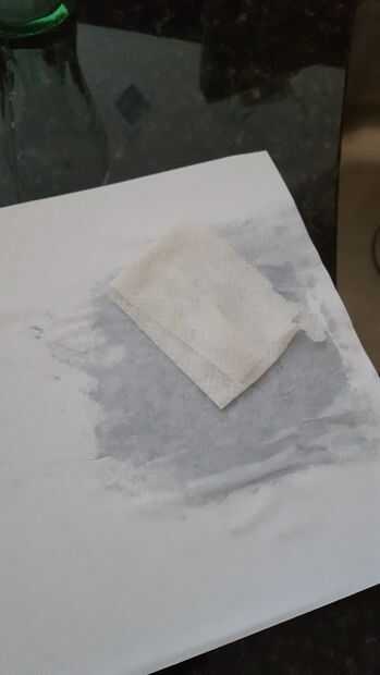 Algunas toallas de papel (no goteando húmedo, apenas saturado) de mojado y mojado de la uno sección de papel en un momento. Iniciar masaje y frote suavemente en movimientos circulares para obtener el papel dejando la cola y la imagen en el acrílico.