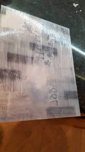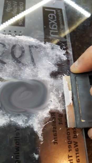 Después de retirar la mayor parte del trabajo, el patrón estará rodeado con pegamento seco que parece opaco. Utilicé una hoja de afeitar para quitar cuidadosamente la mayoría de ellos. (su OK de rayar el acrílico un poco, no será visible después del helado rocío.)