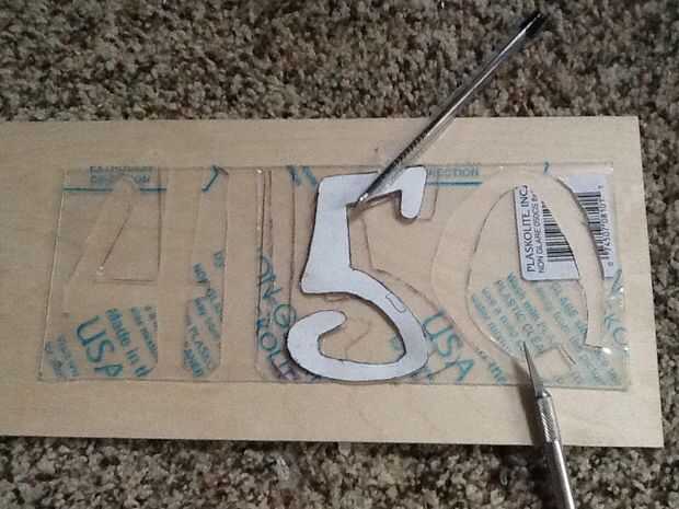 Ahora con x-acto cuchillo trace una línea alrededor del borde del número y entonces Pelen apagado el único el rastro parte del número, por lo que la barrera protectora de plástico servirá de barrera para retención de pintura.