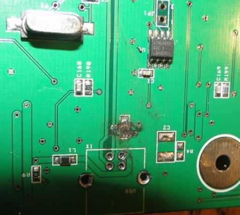 2. derretir cada soldadura de punto en puerto USB y utilizar el 'soldadura sucker' a "chupar" la soldadura de la articulación. Los puntos de 2 anclaje necesitan ser enderezadas con alicates para que a través de los agujeros.