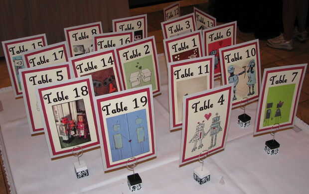 -Los soportes tabla, mantener signos de número (utilizamos los titulares de la tarjeta del lugar, usted podría incluso utilizar titulares DIY encontrados en otros lugares en este sitio de la internet!)