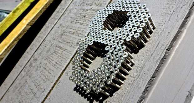 Sugerencia-Si en algún lugar en el centro de cada número y trabajarla hacia fuera en todas direcciones parece más fácil mantener los tornillos relativamente recto en relación con cada uno otro. Si está usando un pedazo de madera que se adjunta más adelante, podría incluso taladre para cada tornillo esté perfectamente recta.