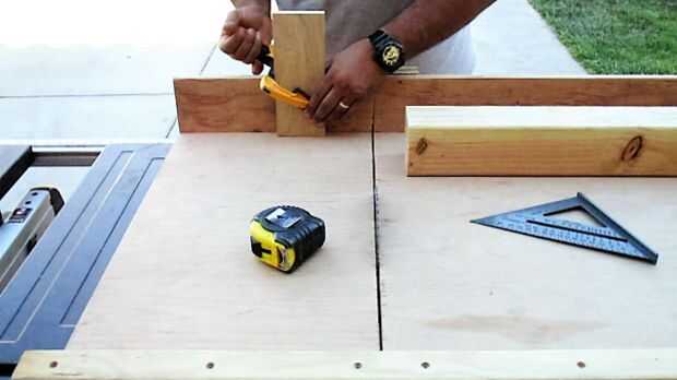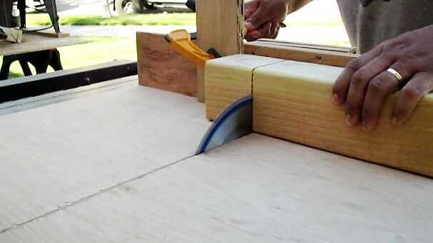 Todavía con mi cruz corte trineo y Sierra de mesa, utilicé un trozo de madera para un bloque de tope así que medí 3.5"(porque un 4 x 4 es realmente 3.5 x 3.5) y sujeta a la guía del trineo. De esta manera puedo ser muy rápida y eficiente al tiempo que cada cubo del mismo tamaño exacto.
