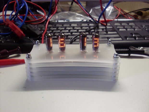 Me decidí a hacer algo que no había visto todavía y combinado (2) separar la electrónica usando pantallas de tubo de vacío de diferentes tipos (2) para hacer esta exhibición única. Nixie tubos para el termómetro y VFD (vacío flouresent pantalla) para