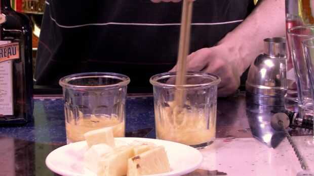 Añadir 1/2 onza de Cointreau a la piña y machacar juntos a una pulpa.