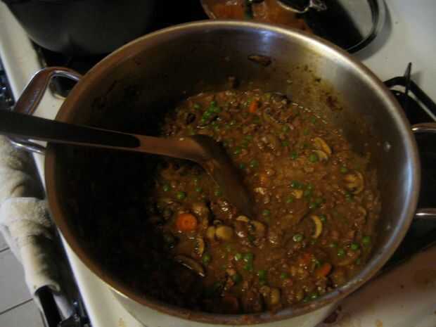 La base es el componente proteico. Aquí estoy cocinando la base para el inglés clásico Pastor de Pie. Hay un montón de versiones de esta receta; Aquí es una buena: http://www.foodnetwork.com/recipes/alton-brown/sh...