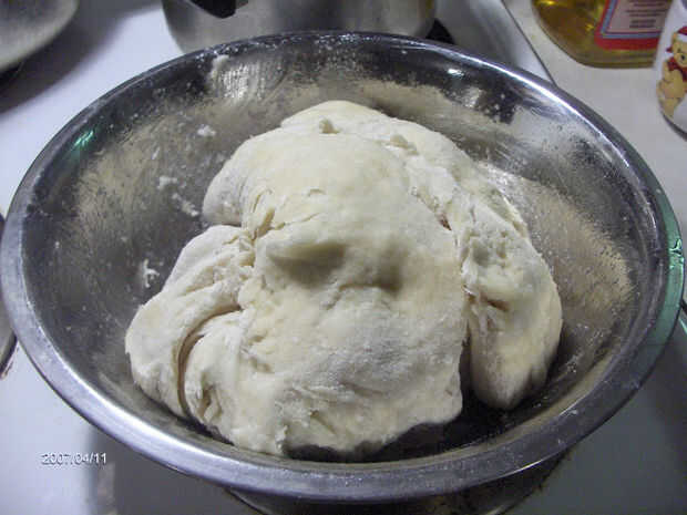 Amasar sobre una superficie enharinada. Colocar en un tazón engrasado de aceite, ponga la masa para rebozar. Cubrir con toalla húmeda, coloque en un lugar cálido durante una hora o hasta que doble su tamaño. Aplaste la masa.
