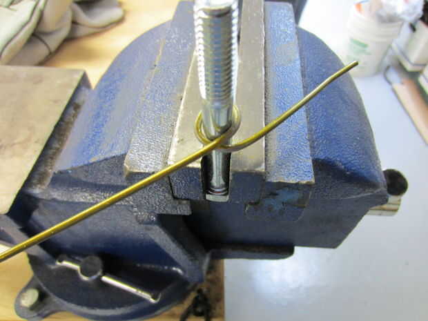 - Poner el tornillo en un torno y el centro del alambre en un bucle de la curva (ver foto séptima).