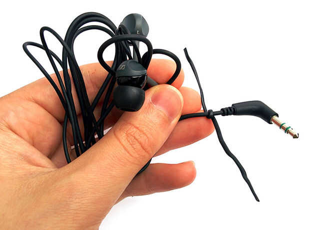 Ahora puede simplemente envolver todo en alambre o hacerlo como lo hice: Sujete el alambre en medio del extremo más cercano al conector de 3.5 y envuelva el paquete entero luego. Esto le permitirá a desatar los auriculares, uso ellos y más adelante, cuando termine de usarlas, permiten para el almacenamiento más rápido para almacenamiento peligroso en el bolsillo, lleno de duendes cable :)