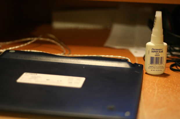 Paso 1: Cómo fijar patas de goma en un ordenador portátil. Uso pegamento para llenar el vacío que están ausentes en los pies de goma. Funciona muy bien y es gratis si ya tienes el pegamento y una pistola de pegamento.