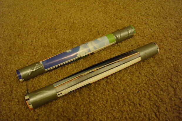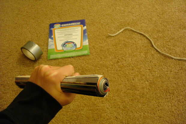 Enrollar una revista tan apretados ya que puede, pero deja bastante de un agujero en el medio que podría deslizarse una cuerda pequeña en el interior. Mantenga vertical y hacer los bordes, incluso colocando la parte inferior sobre una mesa y empujando hacia abajo en la parte superior. una vez incluso con cinta adhesiva los lados en la parte superior e inferior para lograr que mantenga su posición.