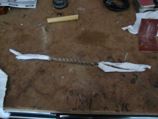 El cable y cerca de 8 pulgadas de tela en un bucle en el extremo de la cuerda. Después de pase a través de las manijas.
