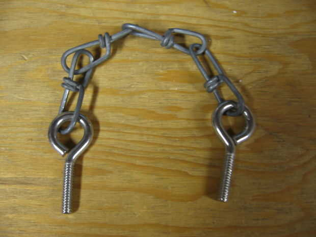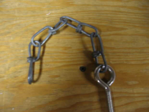 Usar tus músculos varoniles y levante el perno de anilla aparte por lo que puede caber la cadena en él. (hacer esto con ambos)