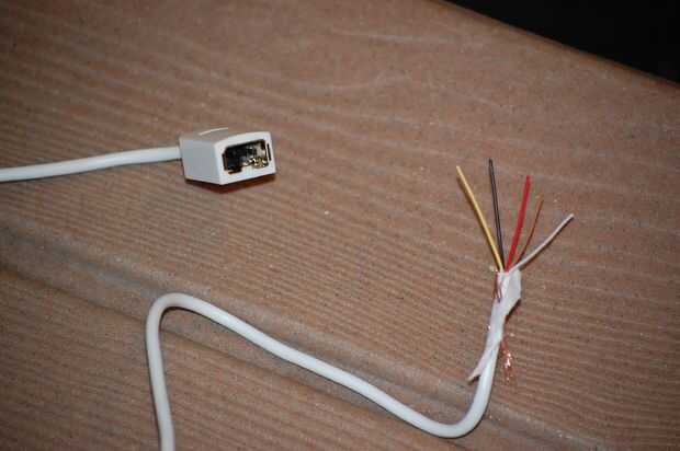 5. sólo 4 cables son utilizados. Buscar en el extremo hembra del cable. Hay 6 puntos de contacto: 3 en la parte superior, 3 en la parte inferior. 4 exterior se utilizan mientras que 2 las y medianas no. Vea el diagrama arriba.
