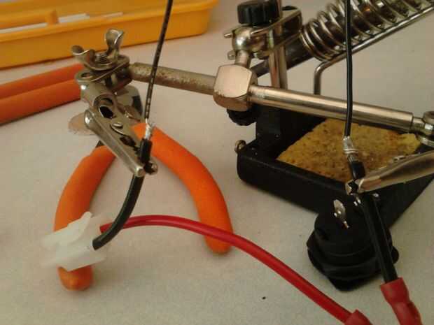 3. corte 2 tramos de alambre para soldar y tira de ambos extremos de cada uno