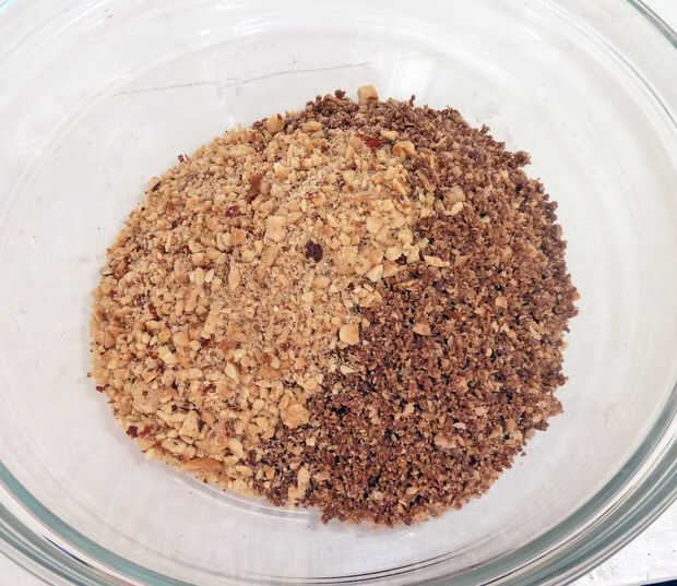 Combinar la mitad de las nueces picadas con la Nutella y mezclar bien. Guardar en la nevera.