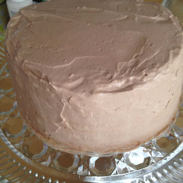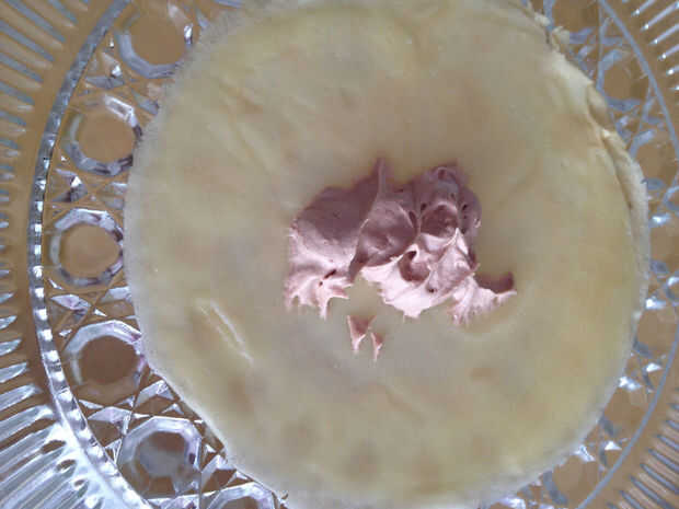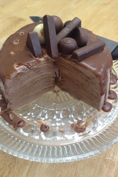 Coloca un crepe en la placa de la torta, extender uniformemente 2 cdas nutella crema luego coloque otro crepe en la parte superior