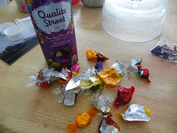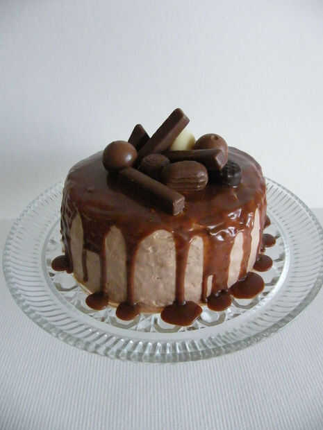 Salpicar el centro superior y lados con ganache y decorar con chocolates Lindor y calidad calle