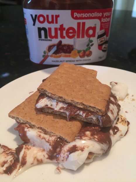Nutella es uno de los más grandes y más decadente chocolate que puedo pensar. Es delicioso el helado, por propio y más aun con malvavisco tostado y galletas. Mi mamá recientemente volvió de América y me trajo galletas que significó que finalmente podría tener cierto smores! (Vivir en Australia no tenía ni idea de qué galletas fueron pero son deliciosos). Esta receta sería increíble para hacer en un viaje de campamento con un fuego abierto o sobre una llama abierta (yo escogí mi antorcha quemada de la nata de crema como mi fuente de llama) porque es tan fácil y realmente delicioso!!