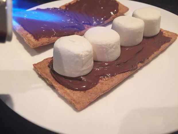 Esta es la parte bella... tostando el malvaviscos!!!!!! La forma más sencilla de hacerlo sería a la galleta con las melcochas en él de microondas durante 10-20 segundos. Pero si tienes una llama abierta tanto se calienta, se derrite y tuesta las melcochas, dándoles un sabor general más agradable. Coloque las melcochas cerca de la llama en todos los lados para que se pone marrón tostado y se expande un poco.