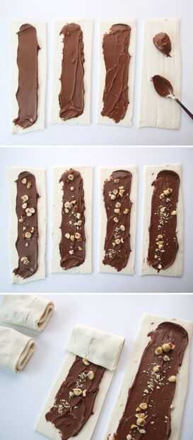 3. colocar una cucharada de Nutella en la parte superior de cada pieza y espárcelo de forma pareja.