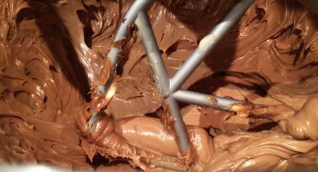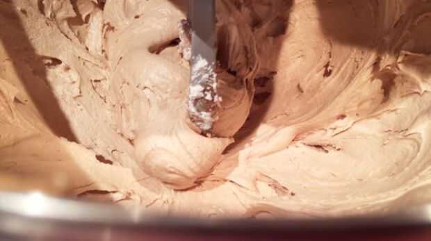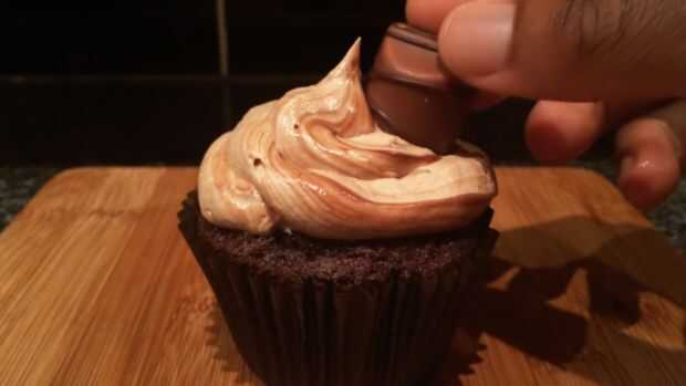 Bata la mantequilla y la Nutella. Lentamente agregue el azúcar glas y batir durante 10 minutos. Para terminar, añadir la vainilla y la crema. Difundir algunos Nutella extra en el interior de una manga pastelera y la crema de mantequilla en la de la Magdalena de la pipa.