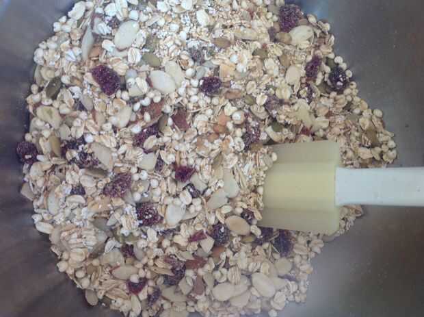Si tienes más de 15 minutos, o puede cram libro en una mano y ausente conscientemente Revuelva por otra parte, puede tostar todos los ingredientes secos excepto arándanos, amaranto palomita y palomita mijo hasta su color se oscurece o hueles su aroma (última foto se muestra). Yo siempre tostar frutos secos, semillas, avena que utilizar en recetas. Es un paso más allá que hace la diferencia entre un cocinero y un buen cocinero.