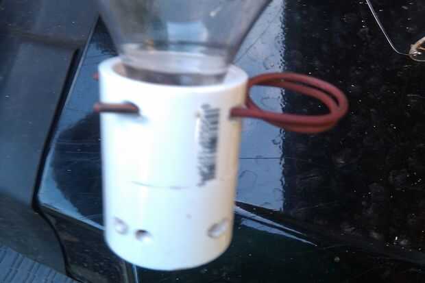 Como se puede ver en las fotos el pvc pipa era cortar en secciones y una forma de "T" con las dos conexiones y cemento de pvc mencionados anteriormente un extremo de la tapa y añade la cupling rápido para del compresser del aire en el otro extremo. Poner una botella de refresco vacía en el tubo que está arriba en el ángulo de 90 grados y haga una marca porque vas a tener que hacer una arboleda donde usted puede deslizar el anillo en o alrededor de. Luego, perfore dos agujeros de 1 pulgada de acoplamiento donde el percutor de alambre y mantener el labio superior de la botella. una vez que lo hace taladrar cuatro orificios en la parte inferior del mismo acoplamiento para los pernos. Si su perdida echa un vistazo a las fotos para obtener ayuda adicional. Coloque una cuerda o cadena para el percutor.