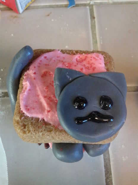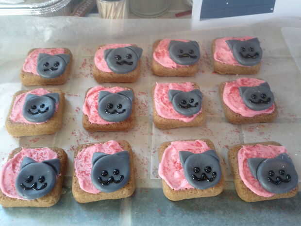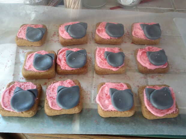 Coloque la cabeza de gato que creó en el paso anterior en la esquina inferior derecha de la cookie de Habbo. Con betún negro, dibujar la cara de un gato en la cabeza.