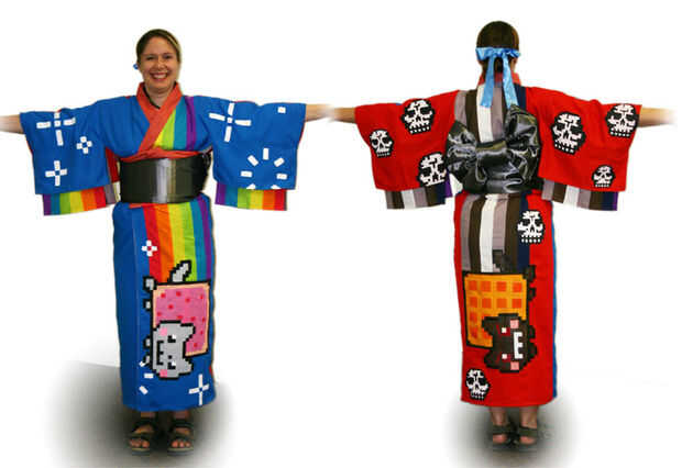 Me encanta usar y hacer kimonos. Son relativamente fáciles de hacer y divertidos para pintar en la fabricación de un tema específico. Últimos 2 kimonos fueron un kimono de duelo de Pac-Man (A-Kon-Convención 2010) y un kimono de Galaga (Halloween 2010).