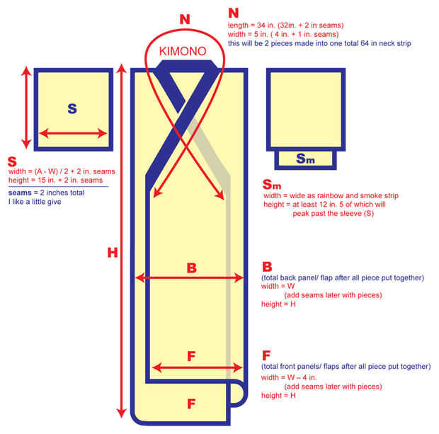 Este kimono va a utilizar la idea de hacer paneles (manojo grande de rectángulos) por piecing juntos piezas, como si fuera un tejido, para hacer todo. Una vez que tengas todo es coser kimono fácil de allí. Por supuesto, añadir un poco de pintura y wha'la.