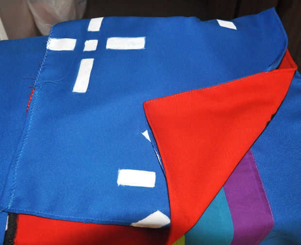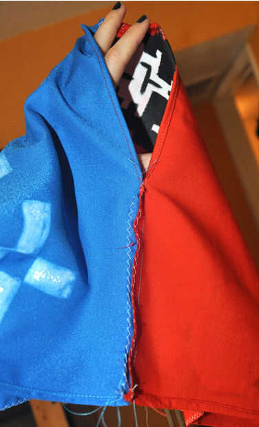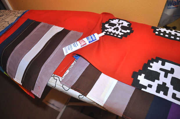 • Utilice el pegamento de la costura o pegamento soluble agua no para conectar las secciones por debajo de la parte interior de la manga. Debe ser lo suficientemente alto desde el borde inferior del borde externo de la manga de modo que parece que está libre flotando en el interior.