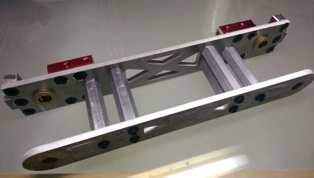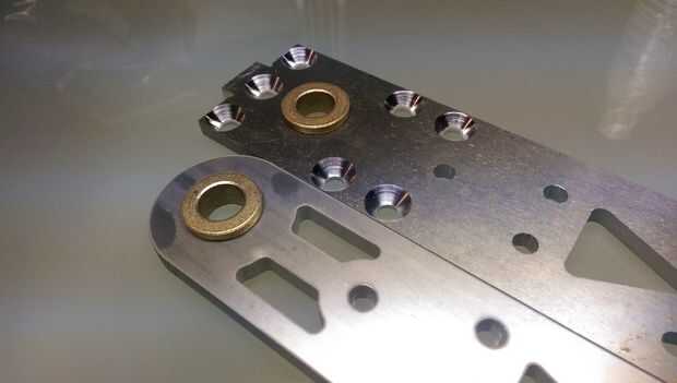 Después de eso pasé algún tiempo con un avellanado de flauta sola poniendo todos los buriles en los largueros del bastidor para la cabeza plana tornillos que se utilizan en los carriles del lado interno. Flatheads se utilizan aquí para evitar que las cabezas de los pernos interfiriendo con las cadenas del coche. Los bujes se presionan en los rieles interiores y exteriores con la brida del buje frente a la ubicación de la rueda y el piñón para que no caen incluso cuando experimenta descarga alta carga.