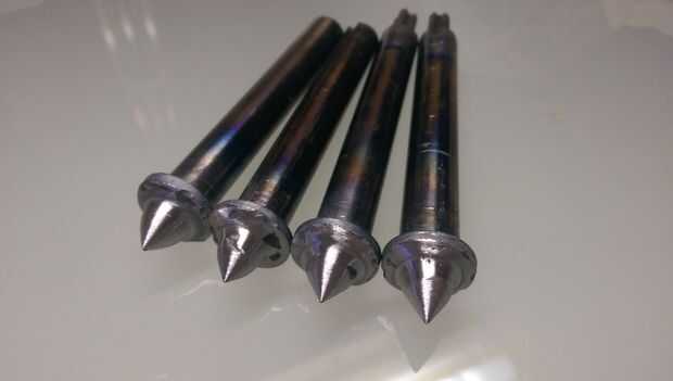 Mientras espera para conseguir el corte de hoja 7075 tomó el cuidado de los árboles de impulsión. Todos los cuatro ejes comenzados como ejes para el Dewalt Powerdrive Kit utilizan en el sistema de impulsión, dos fueron cortadas de una compilación anterior y dos nuevos ejes. La razón para hacer esto es que el diseño del bot es tal que sólo dos ejes son conducidos directamente, mientras que los otros dos están vinculados a su correspondientes accionamiento mediante cadena. Cualquier eje, tienes que hacer algo para evitar que su forma de trabajo hacia fuera con el tiempo. Collares del eje son una solución común, pero para los lados externos del eje serían voluminosos y un objetivo relativamente grandes. En cambio opté por soldar una brida de acero en el eje donde el cuello normalmente habría sido ubicado y el eje del exceso material hasta un punto. Esta hecha para un medio de impedir que los ejes forzados más en el chasis ligero y compacto. La forma de pinchos también hace mucho más difícil para el bot ser apuntalado por su parte, como el punto de equilibrio es mucho menor.