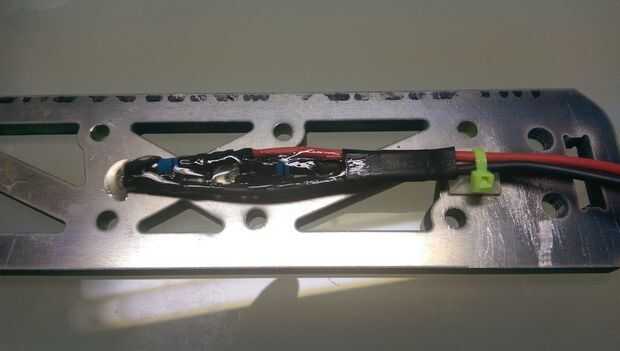 Una vez que la placa se cortó empecé en conjunto con las luces de indicador de energía LED es el primer paso. Son LEDs de alta potencia con un resistor conectado al lado positivo de cada LED para que puedan operar cómodamente con ~ 24v. Ambos LEDs fueron cableados en paralelo, encogimiento envuelto, pegados y zip atado al riel frontal para mantenerlos lejos de las piezas en movimiento y reducir al mínimo las tensiones en los empalmes de la soldadura.