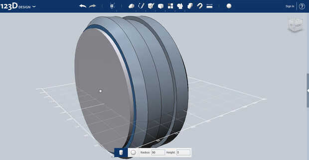 2) nuevamente crear un cilindro de longitud muy estrecho y radio más pequeño en comparación con el marco exterior de la llanta, para ello, tanto las caras circulares en los lados opuestos como se muestra en la figura.