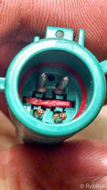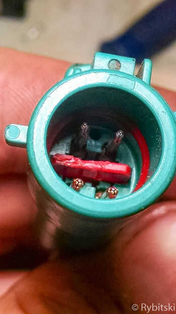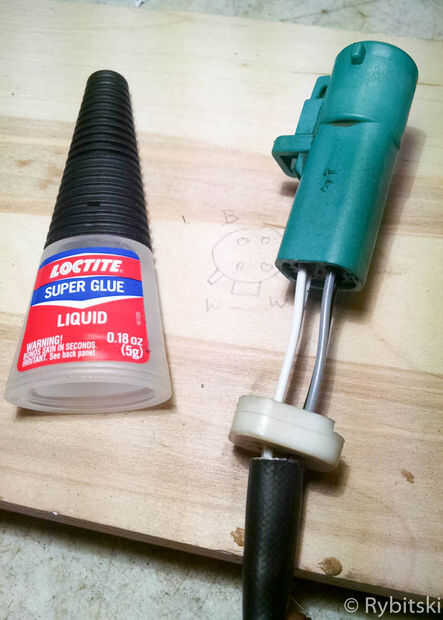 Una vez que todos los cuatro pines se sueldan firmemente en su lugarles empuje la carcasa del conector. Asegúrese de que todos los pines terminaron en la orientación correcta. Ahora vuelva a colocar la cerradura de perno rojo en el centro del conector y presione en su lugar. Por último aplicar algún pegamento alrededor de la tapa blanca y pegamento en su lugar. Ahora debe tener un sensor de O2 que se parece a la OEM se retiró.