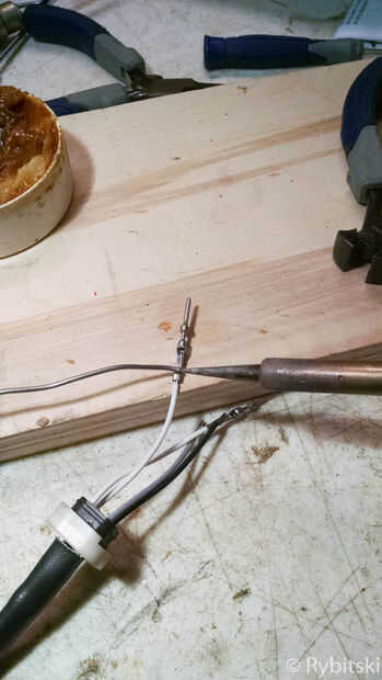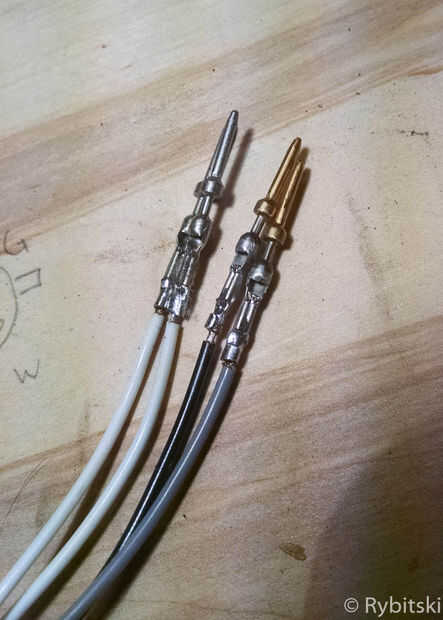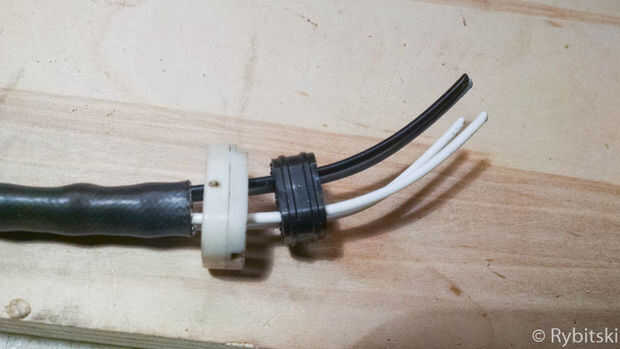 Ahora tenemos que volver a montar el conector en el orden inverso. Asegúrese de seguir estos pasos de cerca como aquí el orden es importante. Si dejas un pedazo le tendrá que dar marcha atrás antes de continuar. Deslice la manga de nuevo en los cables. Línea de los cables según el esquema que dibujó asegurándose de se va hacia atrás en el conector en la misma orientación que las antiguas. Deslice uno el casquete blanco seguido por el ojal de caucho. Pele los extremos de los cables y añadir un poco flujo a cada conductor. Engarce el conector en el cable y soldarlo en el lugar. Es importante conseguir una buena soldadura conjunta para que el cable no funciona se libre con el tiempo. Tenga cuidado de no aplicar demasiada soldadura ya que hasta la piscina y hacer imposible volver a montar el conector.