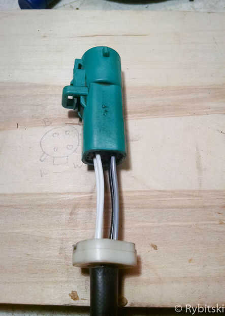 Ahora que tienes el conector completamente desmontado, comparar la longitud de alambre y la manga para el sensor viejo. Cortar la manga y los cables en el nuevo sensor para que coincida con la de la vieja. Es importante mencionar que debe dejar la cubierta protectora en el extremo del sensor hasta sólo antes de instalarlo.