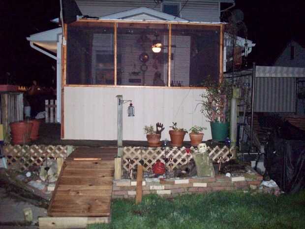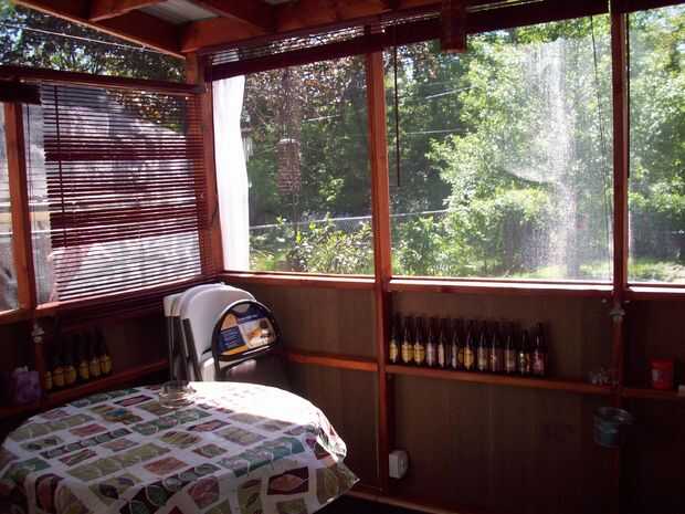 No seguimiento de los gastos totales, pero estiman que ponemos en aproximadamente $1000-$1200. Ponemos encima las cortinas de ducha baratas sobre tubos en PVC montados en el techo para evitar la lluvia durante las tormentas de truenos de verano.
